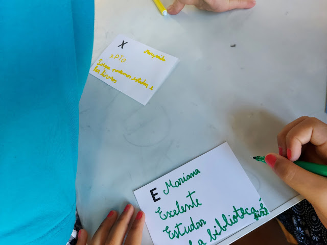 O segundo grupo recebeu a nossa visita na sua própria sala de aula e à proposta A escola é... chegaram palavras como aprender, divertir, TPC. E foi precisamente o TPC que abriu a porta a um dos pontos fortes da sessão: